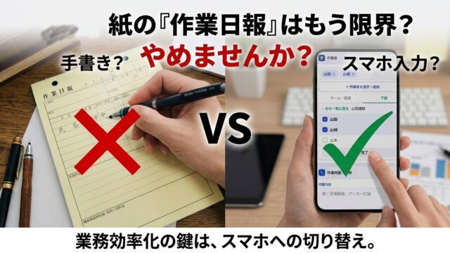 独立してから日報の管理方法に迷った時期がありました。紙は現場で汚れるし、LINEだと後から集計できない。いろいろ調べて使ってみたので、実際にわかったことをまとめます。一口に「日報アプリ」といっても、大手ゼネコン向けの高機能なものから、一人親...